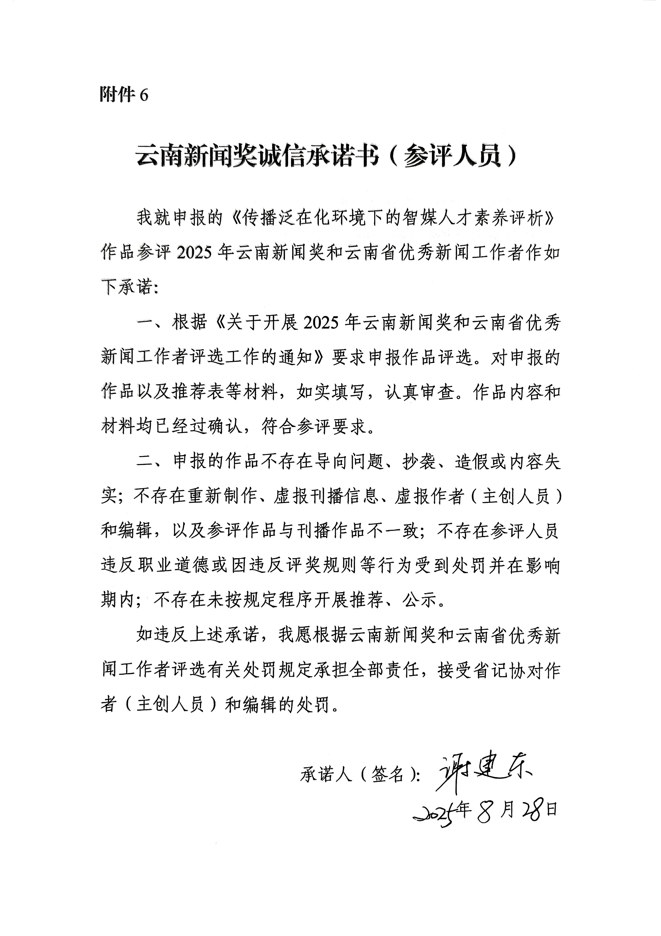 根据省委宣传部等部门关于开展2025年云南新闻奖和云南省优秀新闻工作者评选有关工作的通知要求,经个人申报、专家评审,永利yl23411集团官网入口拟推荐新闻学院谢建东老师的《传播泛在化环境下的智媒人才素养评析》(发表于《新传播(期刊)》2024年第1期)参加本次新闻奖评选。该作品已通过省级初审,现予以公示(具体详见附件)。